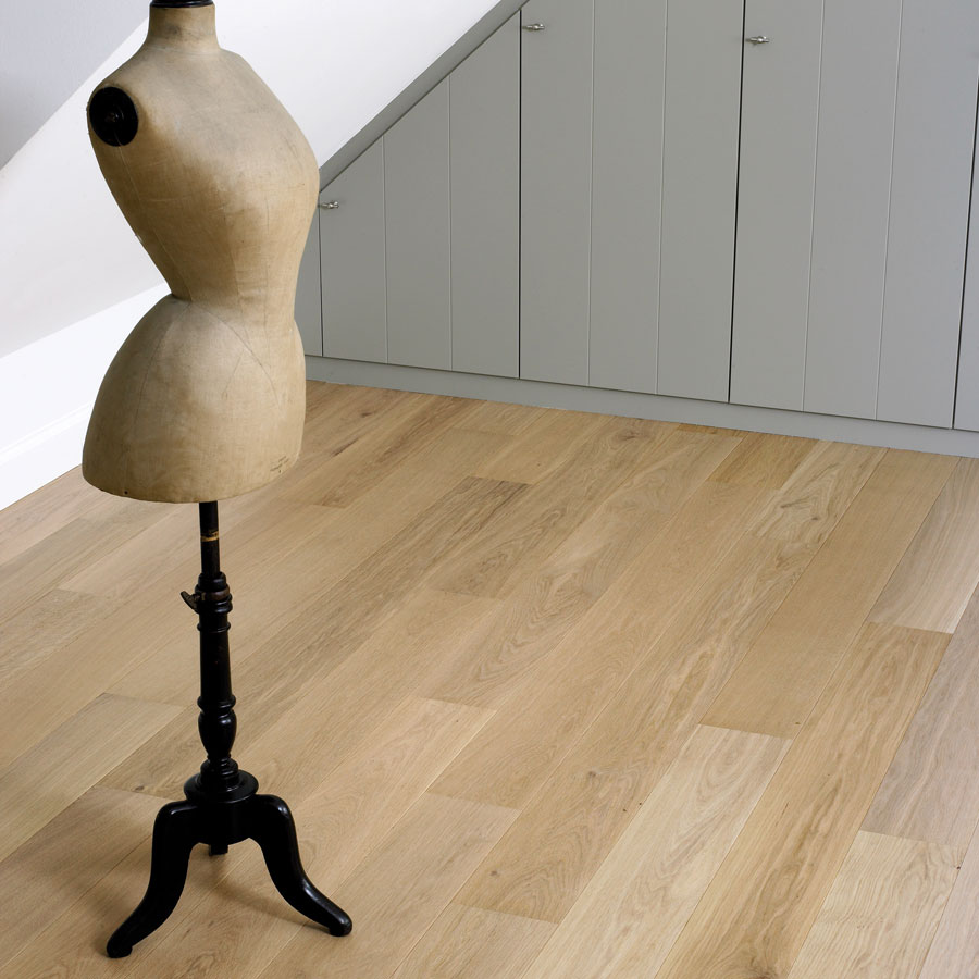 The Quick-Step Palazzo Collection is wood in all it’s glory. Beautifully proportioned, these long and wide planks will add warmth and character to any room. You can see the hand of a master craftsman in every plank of the Palazzo range. All designs have a subtle V-joint on the longest side of each plank, which adds depth and perspective to any room. The wide, luscious boards in the Vintage Oak Matt give any room a feeling of light and space, without compromising on ambience. The extraordinary detail and authentic modern charm is copied with its purity and exquisite quality.
